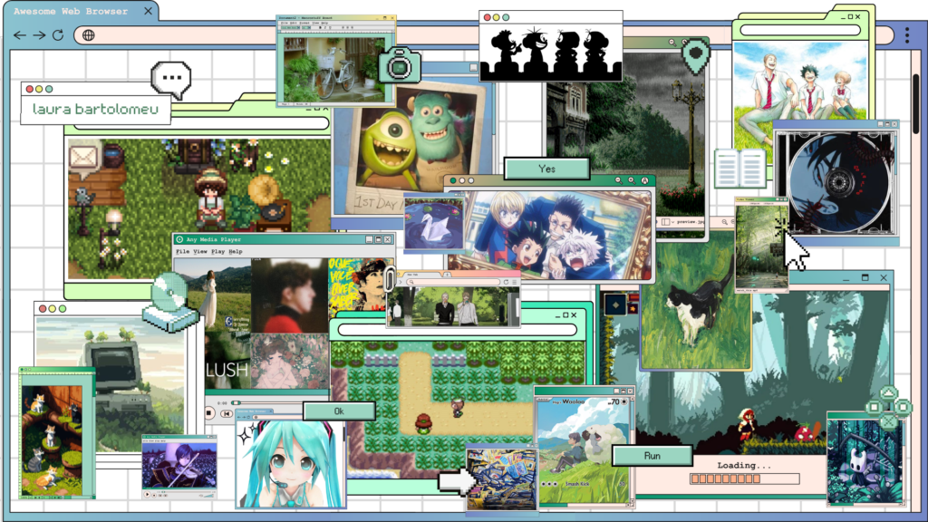 A partir da análise das nossas preferências pessoais, identificamos afinidades em comum, como o apreço pela pixel art, tecnologia, elementos futurísticos, paletas de cores favoritas e referências mais incomuns que nos representam. Esses elementos foram integrados de forma intencional no processo criativo da marca, resultando em uma identidade visual que traduz quem somos e expressa, da melhor forma, a união das nossas duas personalidades.