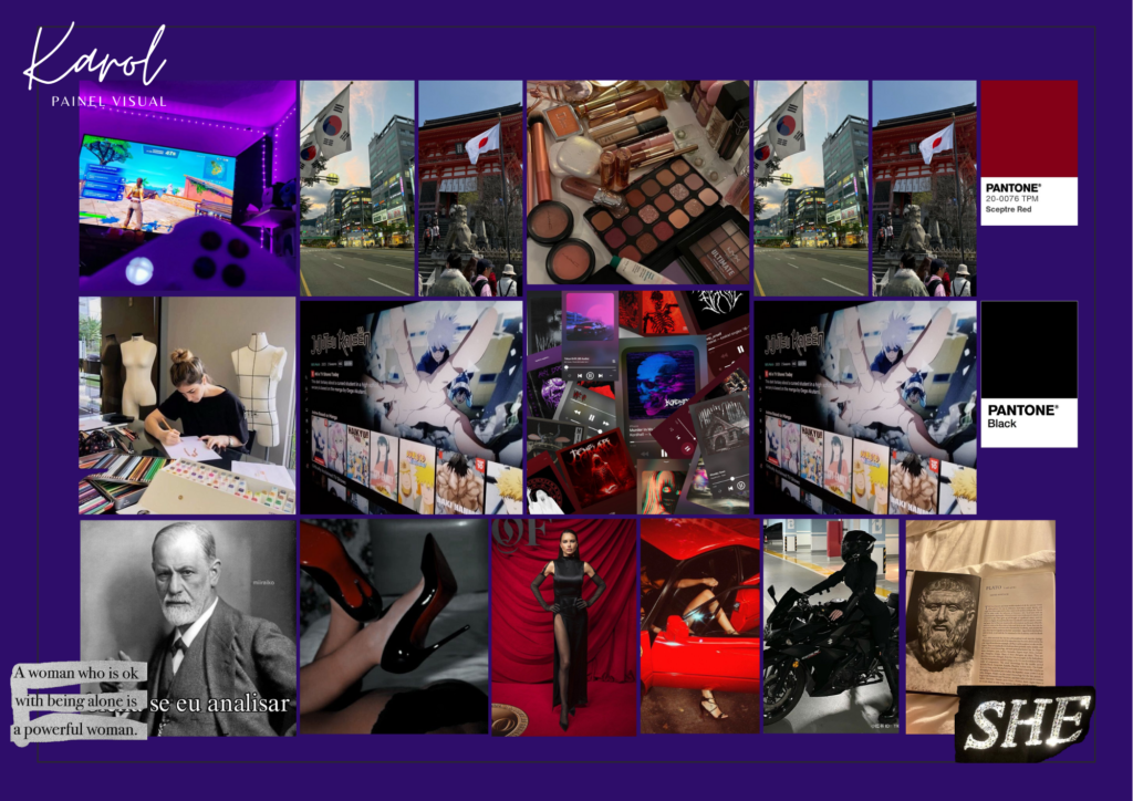 Iniciamos o processo com um estudo individual sobre cada um dos dois membros da dupla, buscando identificar elementos que remetessem às suas personalidades, referências e estilos. Por meio da criação de painéis descritivos, foi possível visualizar, em imagens, cores, formas e conceitos que representavam cada integrante. Essa etapa permitiu observar tanto as concordâncias quanto as divergências entre as percepções visuais de cada um. Ao analisar esses pontos em comum e contrastes, conseguimos compreender melhor a essência que conectava o grupo.